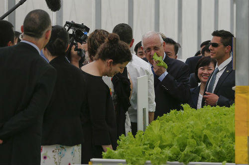 Đón đoàn lãnh đạo cấp cao của Nhà nước Israel tại dự án, phía Việt Nam có sự hiện diện của Bộ trưởng Bộ Nông nghiệp và Phát triển Nông Thôn ông Nguyễn Xuân Cường, Chủ tịch UBND tỉnh Vĩnh Phúc ông Nguyễn Văn Trì và các lãnh đạo của Tập đoàn Vingroup.