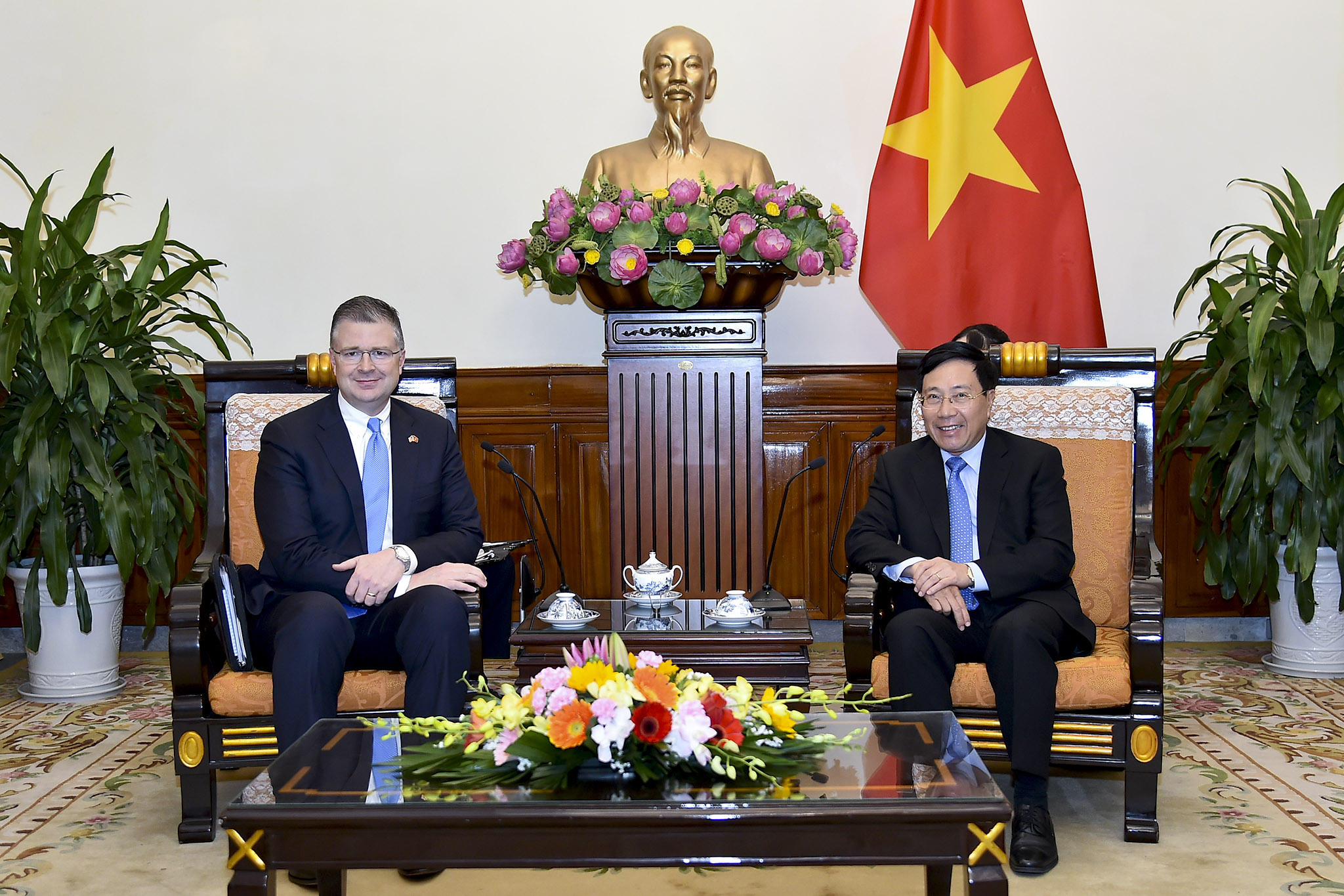 Tại buổi tiếp, Phó Thủ tướng, Bộ trưởng Phạm Bình Minh bày tỏ vui mừng về những tiến triển thực chất trong quan hệ hai nước trong năm 2018, trong đó hai bên duy trì thường xuyên tiếp xúc, trao đổi đoàn; quan hệ hợp tác kinh tế tiếp tục phát triển năng động, xuất khẩu của Mỹ vào Việt Nam (tính đến hết tháng 10/2018) tăng 23% so với cùng kỳ năm ngoái.