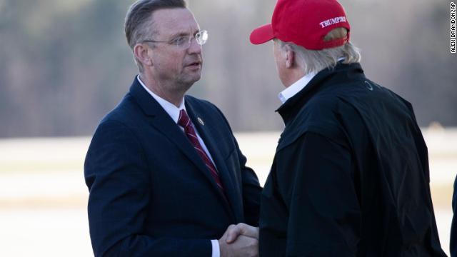 | Nghị sĩ Doug Collins chào Tổng thống Trump khi ông bước xuống từ Không lực Một hôm 6/3 |