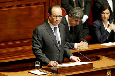 Từ Paris, Tổng thống Francois Hollande phát biểu trước lưỡng viện Quốc hội, nói rằng "nước Pháp đang trong thời chiến".
