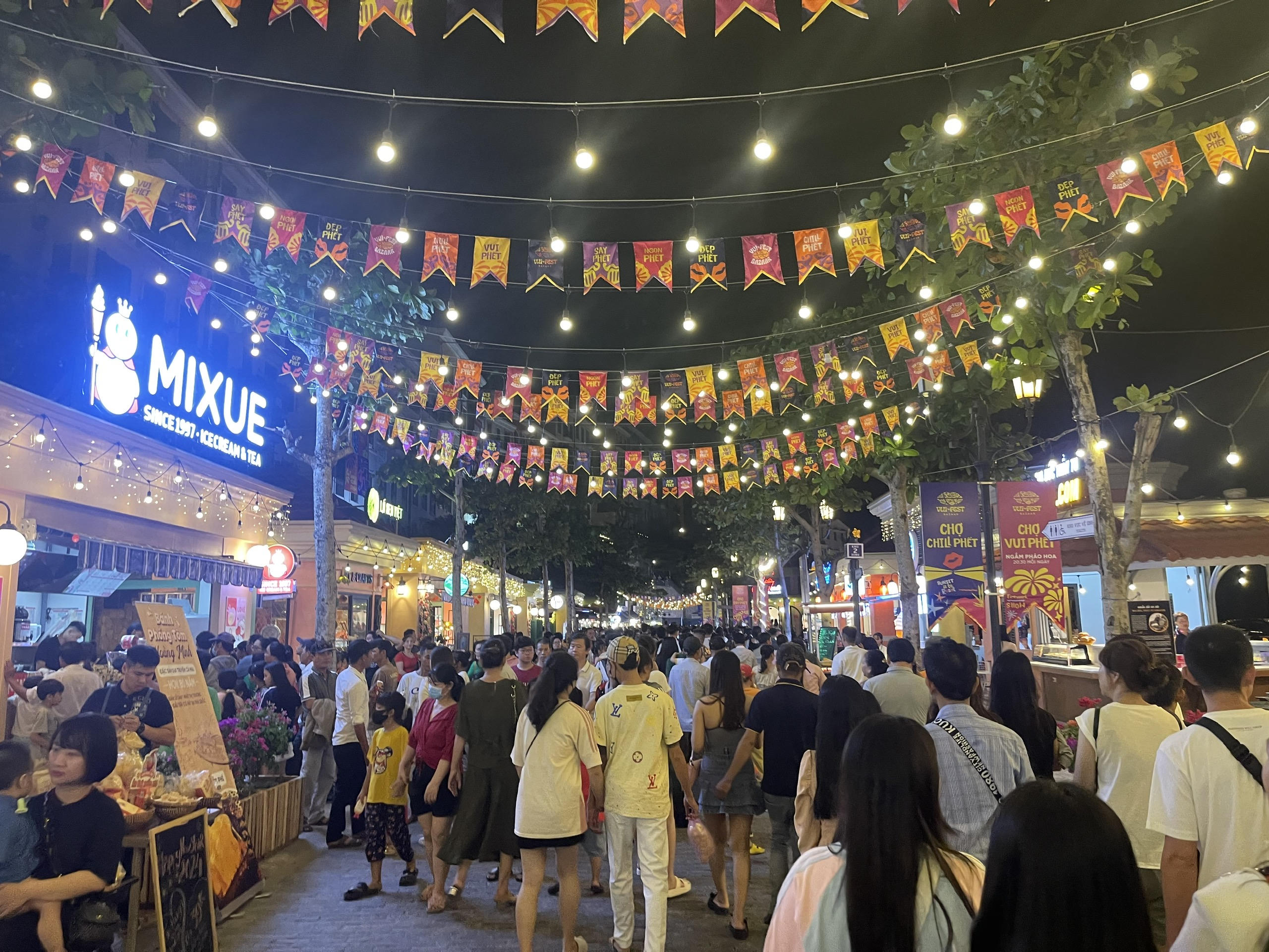 Khách du lịch đến tham quan tại chợ đêm Phú Quốc nhân dịp đầu năm mới. |
