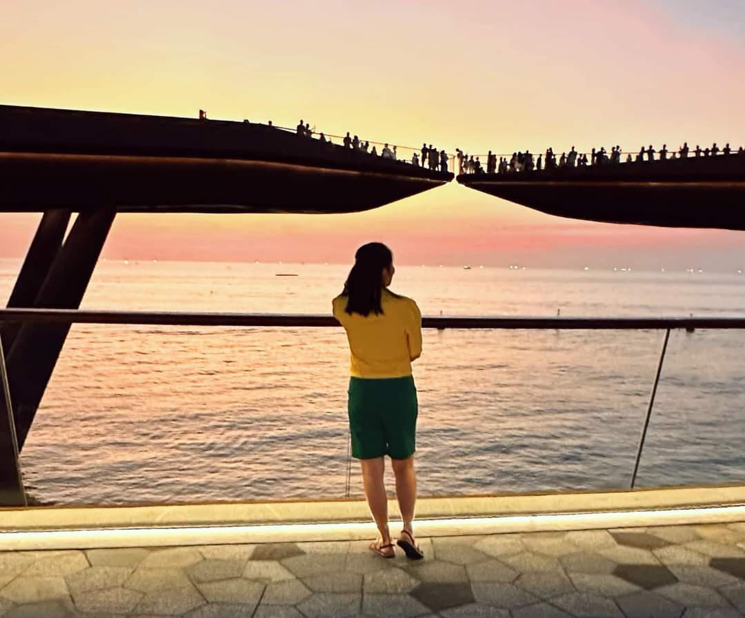 Khách du lịch chụp ảnh lưu niệm tại Cầu Hoàng Hôn - Phú Quốc. |