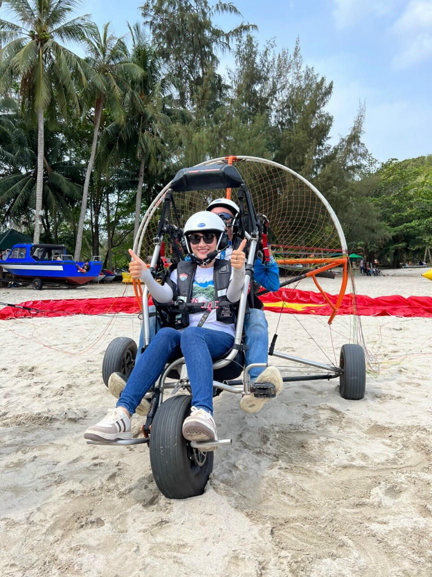 Khách du lịch chơi dù lượn tại Mũi Nai,thành phố Hà Tiên, Kiên Giang. |
