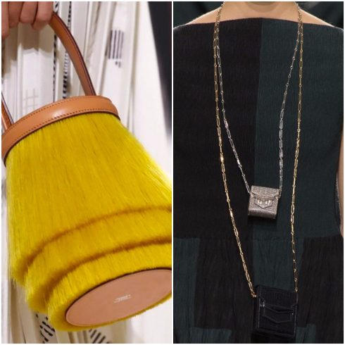 Tư duy thiết kế đề cao vẻ đẹp tối giản thể hiện qua những mẫu giày đế bằng kiểu brogue với điểm nhấn là chi tiết wingtip; giày ankle boots kiểu xỏ hoặc buộc dây ấn tượng. Kết hợp hài hòa là mẫu túi xách tay mà phần bề mặt được trang trí bằng chất liệu lông và dây chuyền với điểm nhấn mặt trang trí chính là phiên bản mini của những mẫu túi.