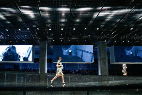 Không gian trình diễn tựa như một câu lạc bộ đêm. Bên trong khu vực catwalk, từng hàng ghế ngồi được ngăn cách bằng những tấm màn và rèm mờ ảo. Toàn bộ phần cột được trang trí bởi tổng cộng 250.000 ô kính phản chiếu ấn tượng. Về âm nhạc, thay cho nhịp điệu ca khúc là giọng đọc của Florence Welch với bài thơ “Songs of Innocence and Experience” của William Blake.