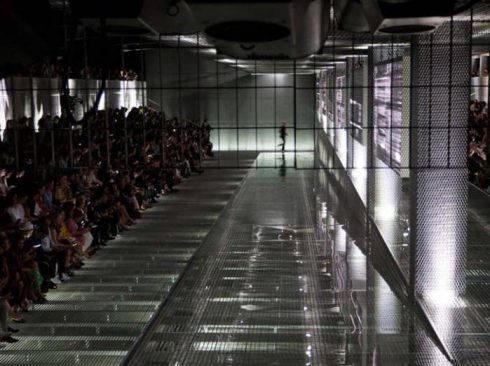 Tổng thể thiết kế không gian trình diễn gợi đến hình ảnh trường đua ngựa. Dọc hai bên sàn catwalk là hàng ghế ngồi được làm bằng gỗ mộc đồng điệu với đường băng đặt trên sàn trình diễn. Ánh sáng được bố trí tiêu chuẩn hướng vào trung tâm. Người mẫu sải bước trên nền nhạc mang âm điệu dồn dập do phù thủy âm thanh Michel Gaubert đảm nhiệm.