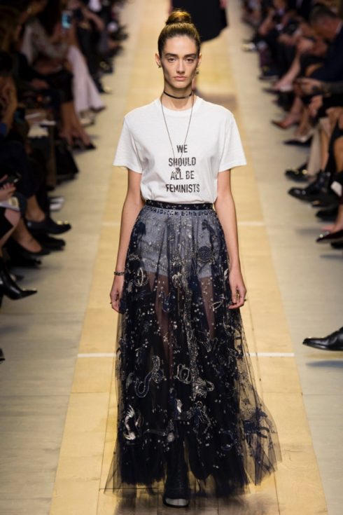 Là nữ “thuyền trưởng” đầu tiên của Dior, NTK Maria Grazia Chiuri khẳng định lập trường cá nhân luôn trung thành sát cánh với nữ giới. Câu khẩu ngữ “We should all be feminists” (tạm dịch: Chúng ta nên ủng hộ nữ quyền) của Chimamanda Ngozi Adichie không chỉ là quan điểm chính trị mà còn bao gồm ý nghĩa nhân văn về quyền bình đẳng.