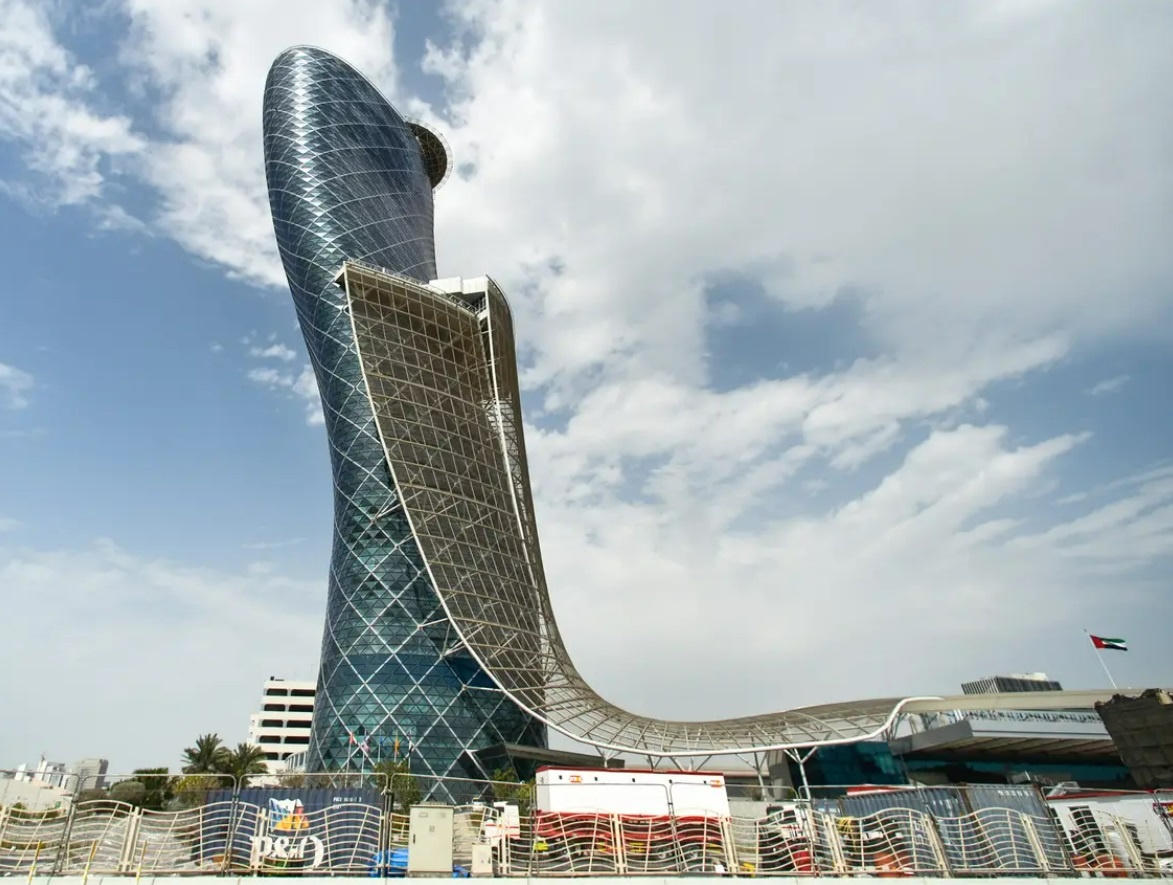 Tòa tháp Capital Gate cao 160m và có 35 tầng, đây là một trong những tòa nhà cao nhất thành phố Abu Dhabi, Các Tiểu vương quốc Ả rập Thống nhất.