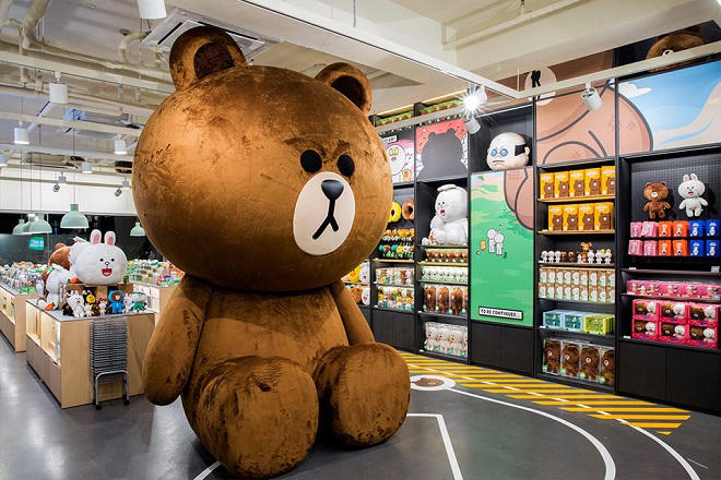 Đây không chỉ là shop bán đồ lưu niệm mà còn là quán cà phê. Điểm nhấn của tổ hợp này chính là chú gấu Brown khổng lồ nằm ngay mặt tiền tầng 1 của cửa hàng. Đây là cửa hàng đầu tiên và lớn nhất của LINE trên toàn thế giới. Ở đây bạn có thể tìm thấy những món đồ lưu niệm quá sức dễ thương lấy cảm hứng từ những nhân vật hoạt hình đáng yêu quen thuộc. Nhất định phải chụp chung với chú gấu Brown mềm mịn nhé.