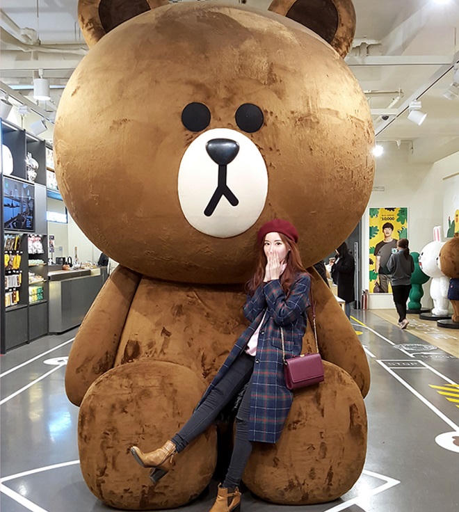Không phải một danh lam thắng cảnh nào khác mà chính cửa hàng của LINE Friends là nơi check in nhất định phải đến của bất cứ cô gái nào khi đi du lịch Hàn Quốc. Thỏ Cony và gấu Brown vốn đã quá quen thuộc với những ai mê những món đồ lưu niệm nhỏ xinh và yêu thích ứng dụng nhắn tin của LINE.