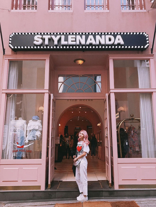 Địa điểm thứ hai nhất định nên ghé qua để chụp ảnh “sống ảo” không đâu khác chính là “siêu tổ hợp giải trí” của hãng thời trang và mỹ phẩm nổi tiếng Stylenanda. Với tông màu hồng đặc trưng, khu trưng bày quần áo, quầy cà phê trong nhà và ngoài trời, tất cả đều gợi cảm hứng chụp ảnh cho bất cứ nàng “bánh bèo” nào.