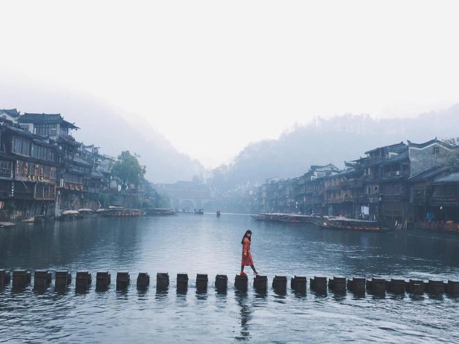 Dù Phượng Hoàng cổ trấn đã không còn hoang sơ như trước bởi lượng khách du lịch đến đây ngày càng đông đảo, thị trấn hàng nghìn năm tuổi này vẫn là điểm đến đầy hứa hẹn của những ai chưa có cơ hội ghé thăm. Sẽ rất khó khăn để có thể tìm ra khoảng trống cho những bức ảnh “so deep” trên chiếc cầu đá nhảy nổi tiếng. Tuy nhiên, hãy cố gắng dậy thật sớm, bạn vẫn còn nhiều cơ hội.