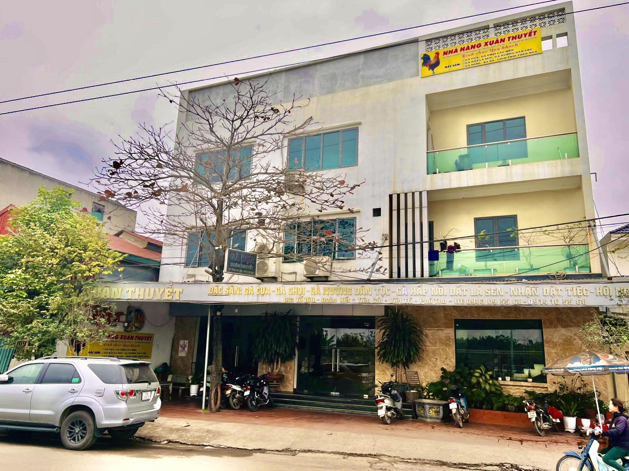 Với tiêu chí chất lượng đưa lên hàng đầu, nhà hàng Xuân Thuyết chuyên các món ăn về gà cựa, gà chọi, cá… đã được đông đảo khách hàng tại TP.Việt Trì biết đến từ nhiều năm nay. Nhà hàng có vị trí thuận lợi, rộng rãi, có sức chứa khoảng 200 khách/ lượt. Đặc biệt, các món ăn từ thịt gà cựa săn chắc, thơm ngon với hương vị xào lăn, hấp xôi, xé phay tạo nên nét đặc trưng riêng của nhà hàng. Mỗi món ăn đều được chế biến theo nguyên liệu riêng nhưng vẫn cảm nhận được trọn vị hương vị thơm ngon vốn có của từng miếng gà cựa. Ngoài món ăn từ gà, nhà hàng còn có các món ăn từ chim, cá, hải sản, bò, lẩu… nhằm mang tới nhiều sự lựa chọn, đáp ứng đa dạng nhu cầu của thực khách. Giá đồ ăn mỗi khách từ 150 nghìn đồng trở lên.