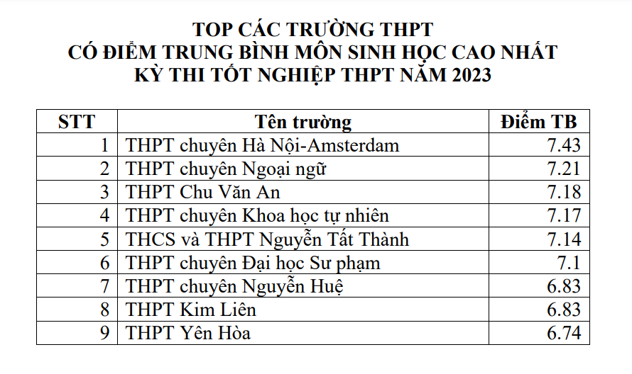 THPT chuyên Hà Nội - Amsterdam đứng đầu môn Hoá học, Sinh học với điểm trung bình lần lượt là 7,47 và 4,43.