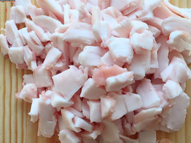 - Bước 1: Mỡ phần thái nhỏ rồi cho vào chảo rán và đảo đều tay đến khi thành tóp thì vớt ra.