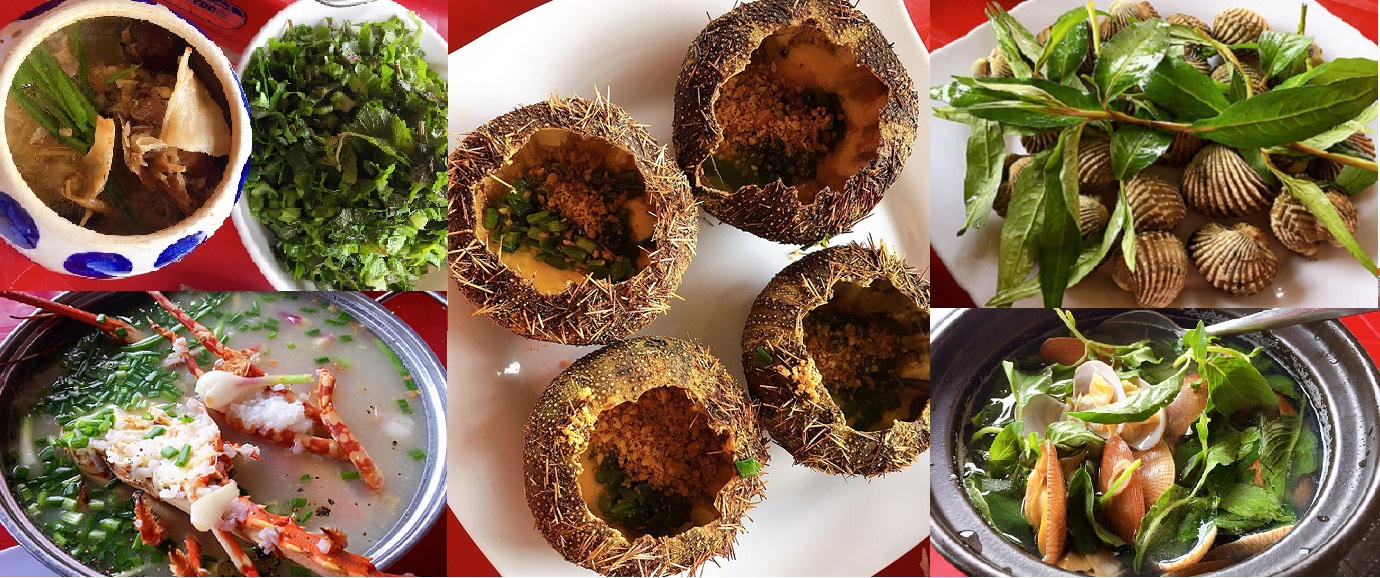 Một ngày ghé qua Phú Yên, cặp đôi chọn các món hải sản nổi tiếng ở đây để thưởng thức. Trong đó, mắt cá ngừ đại dương, nhum nướng, tôm hùm sao, sò huyết, sò lụa xám… là các món được cặp đôi hết lời khen ngợi.