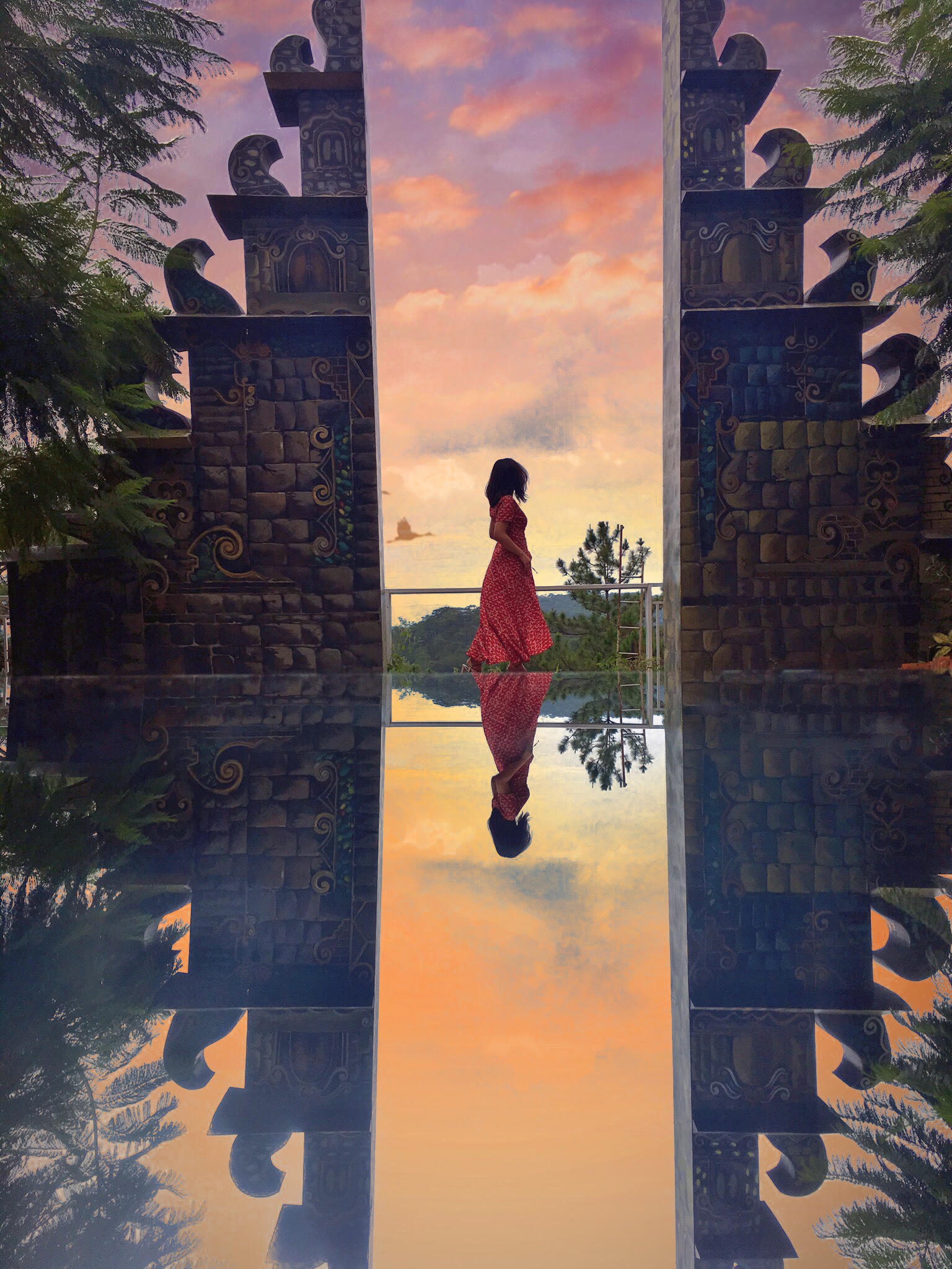 Update rất kịp thời những điểm đến mới ở Đà Lạt đang gây sốt trên mạng, cặp đôi đã nhanh chân check-in tại nơi được ví “Cổng trời Bali” với thiết kế độc đáo. Nhờ năng khiếu “thả dáng” cộng với nghệ thuật chỉnh màu, Bích Ngọc đã thu về một bức ảnh ảo diệu và đầy tính nghệ thuật.