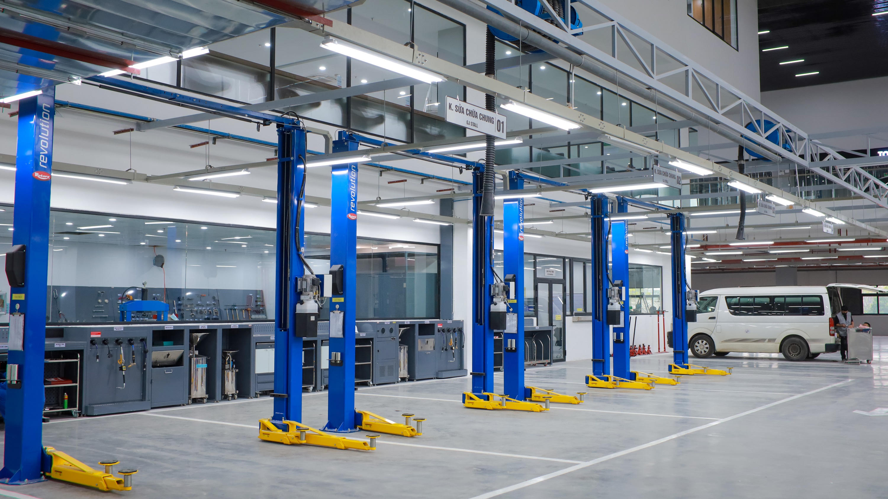 Khu vực xưởng được thiết kế với 36 khoang sửa chữa, |