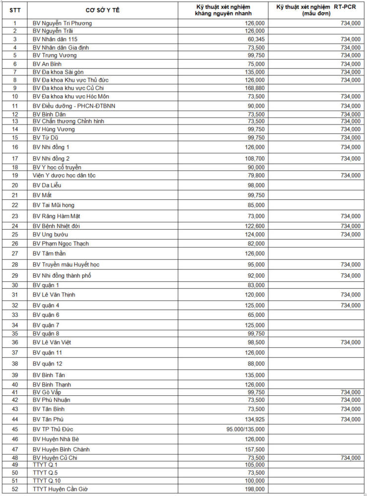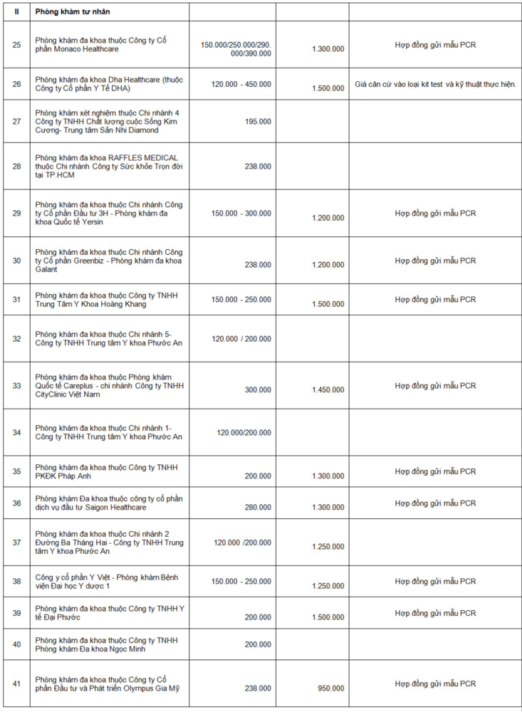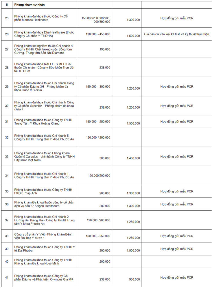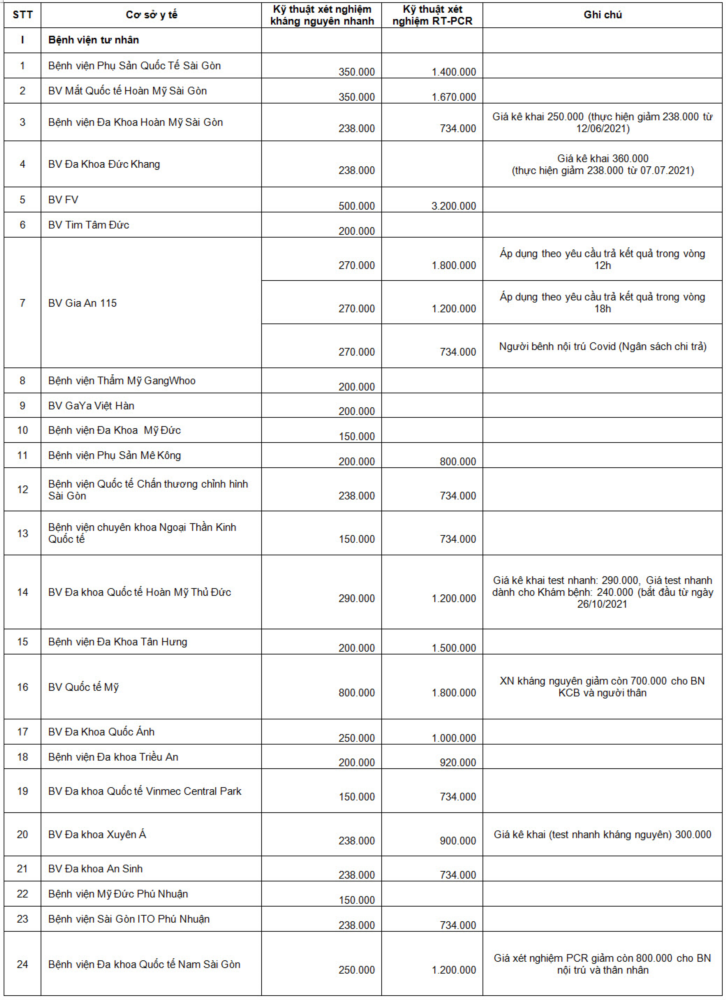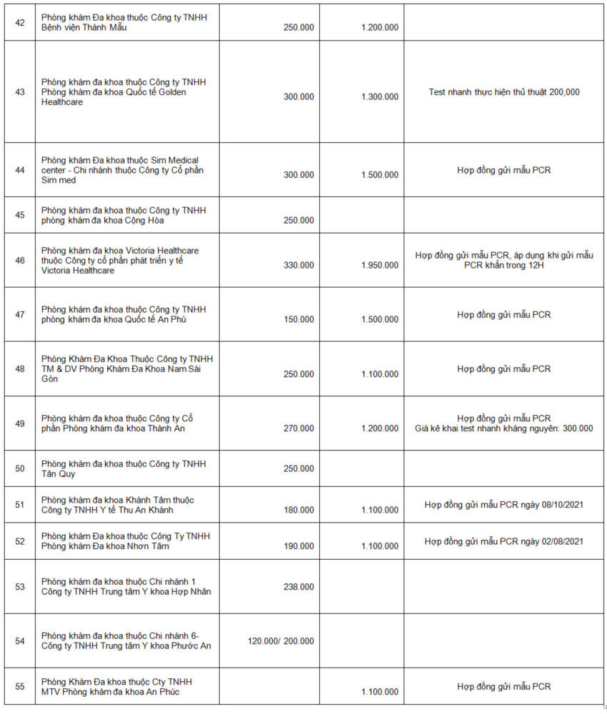 Danh sách các cơ sở y tế tư nhân đã tự công khai giá xét nghiệm COVID-19 và báo cáo về Sở Y tế |