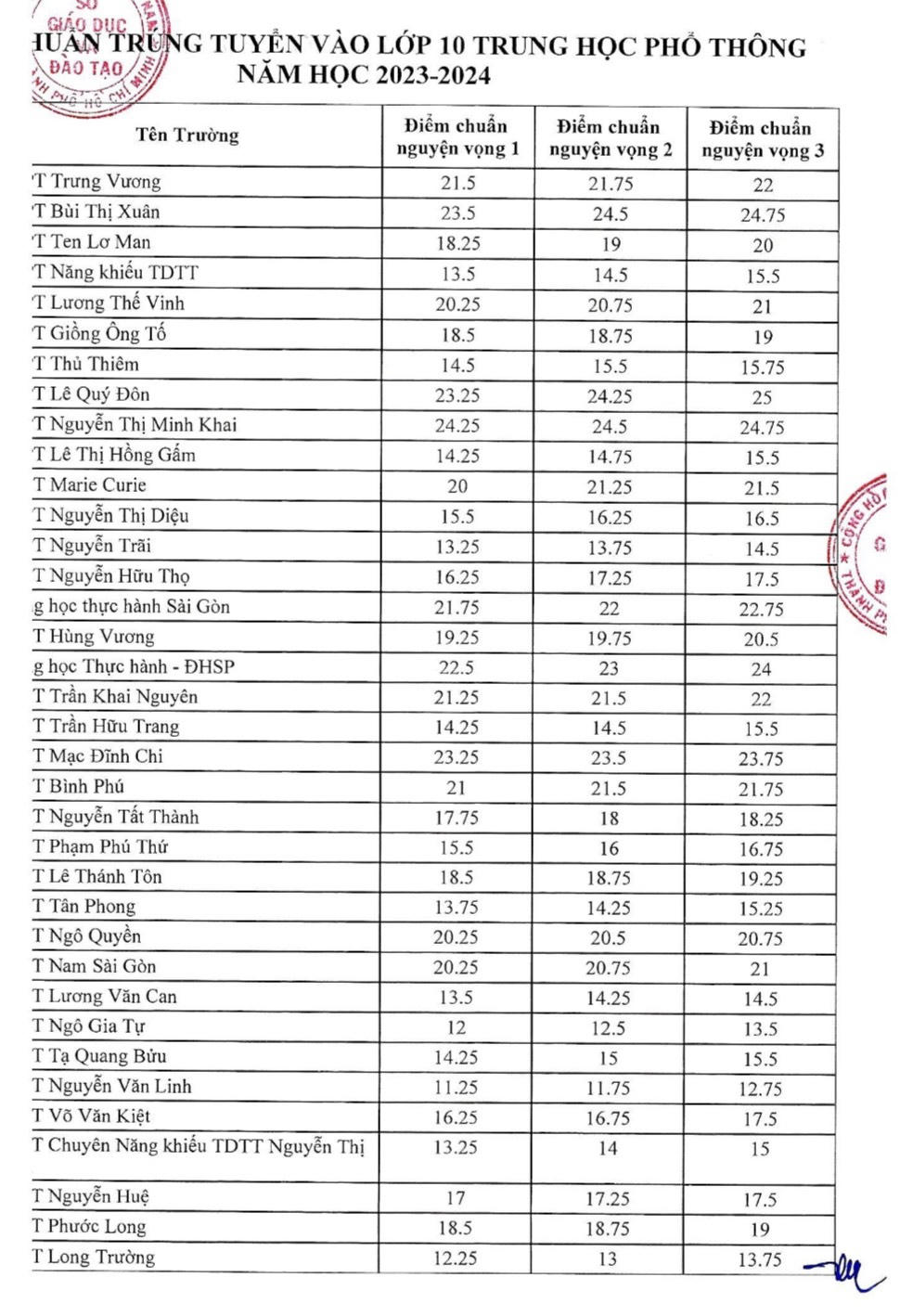 Điểm chuẩn lớp 10 vào các trường THPT công lập 2023 - 2024 tại TP HCM như sau: