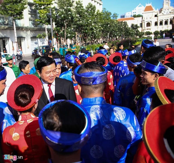 Đặc biệt, trong lễ cưới tập thể sáng này Bí thư Thành ủy TP.HCM Đinh La Thăng và 1 số lãnh đạo chính quyền TP. HCM đã đến nơi chúc mừng hạnh phúc cho các cặp đôi uyên ương.