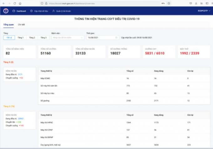Sản phẩm của sự phối hợp giữa Sở Y tế, Sở Thông tin & Truyền thông và Văn phòng Bộ Y tế - bảng điều khiển tình hình thu dung (tổ chức tiếp nhận và bố trí) điều trị COVID-19 của các cơ sở y tế trên địa bàn Thành phố chính thức hoạt động tại địa chỉ https://bccsdt.moh.gov.vn.