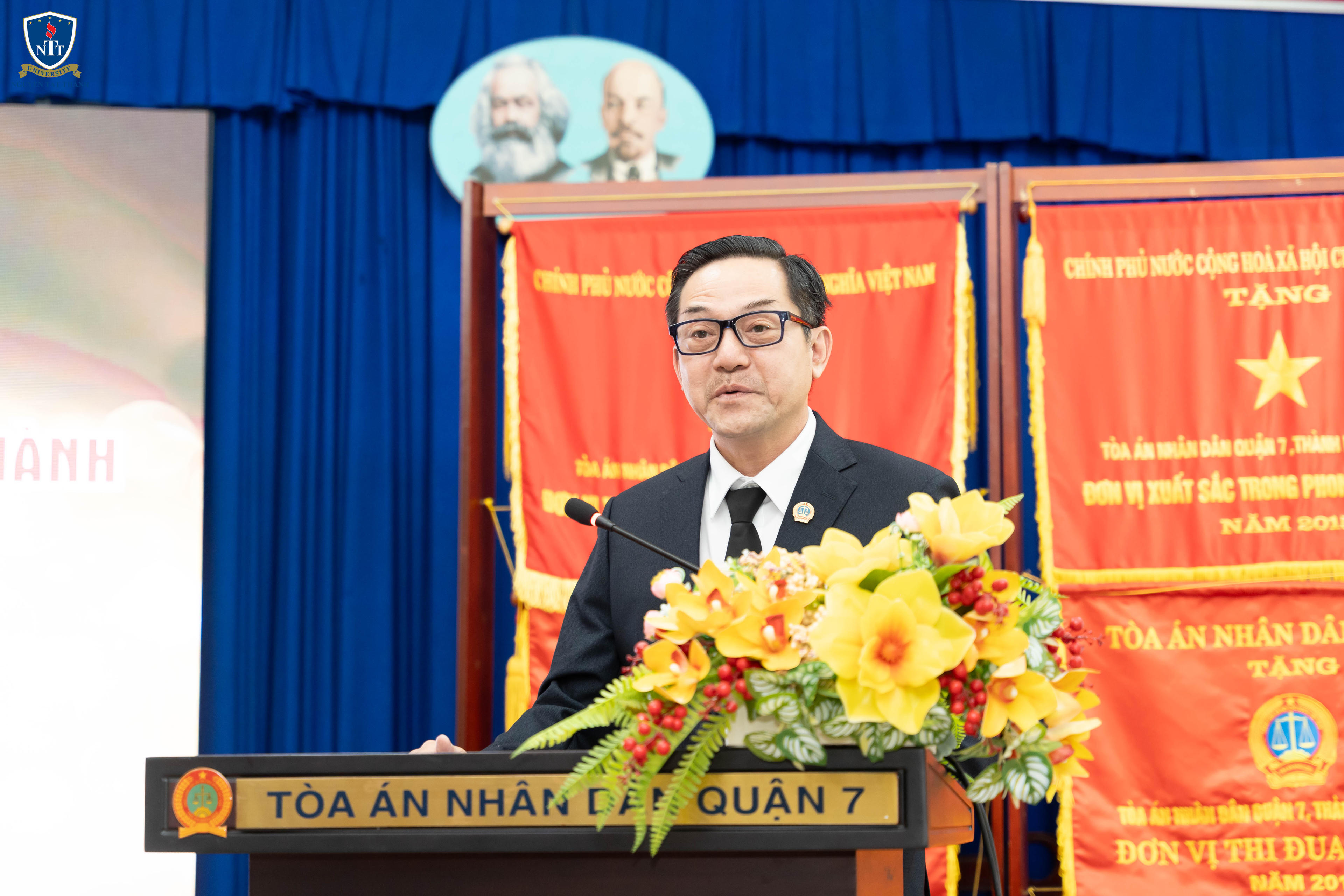 Tham dự buổi lễ, về phía TAND Quận 7 có ông Lê Thuần Phong - Chánh án, bà Lê Thị Phơ - Phó Chánh án, cùng tập thể cán bộ của Tòa án. Về phía Trường Đại học Nguyễn Tất Thành có sự hiện diện của TS Nguyễn Mai Lan - Chủ tịch Hội đồng Trường, TS Nguyễn Tuấn Anh - Phó Hiệu trưởng, TS Đặng Thu Huyền - Trưởng khoa Luật cùng các cán bộ, giảng viên nhà trường.