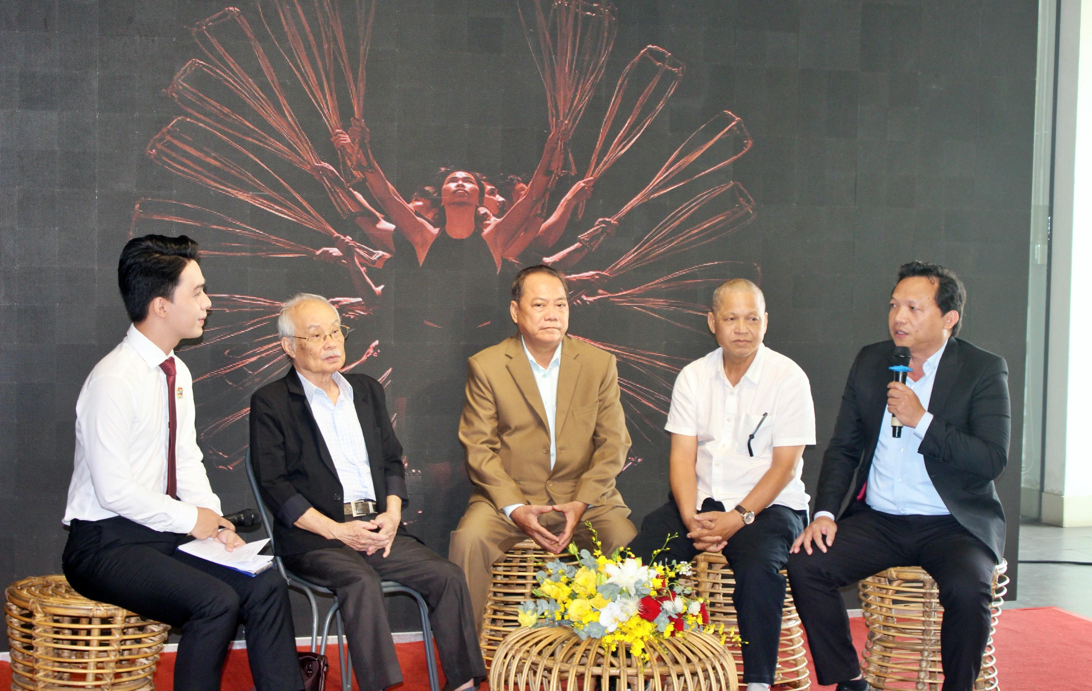 Đại diện các nhóm tác giả giao lưu tại họp báo công bố 50 tác phẩm văn học nghệ thuật tiêu biểu của TP HCM. |