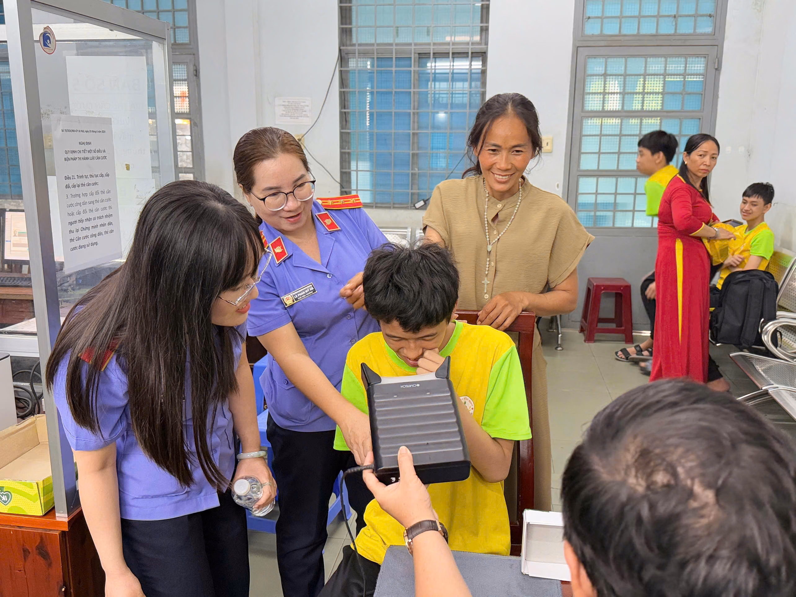 Tuy nhiên, do tình trạng khuyết tật hiểm nghèo, khả năng vận động hạn chế, các cháu không thể di chuyển đến trụ sở cơ quan Công an để thực hiện quy trình thu nhận đặc điểm nhận dạng và sinh trắc học... Do đây là nhóm đối tượng đặc biệt yếu thế, thuộc phạm vi bảo vệ trọng tâm theo tinh thần Nghị quyết số 205/2025/QH15 của Quốc hội và để thực hiện tốt công tác phối hợp giữa các cơ quan bảo vệ pháp luật, VKSND Khu vực 8 đã kiến nghị Công an xã Tân An Hội cùng thực hiện công tác này.