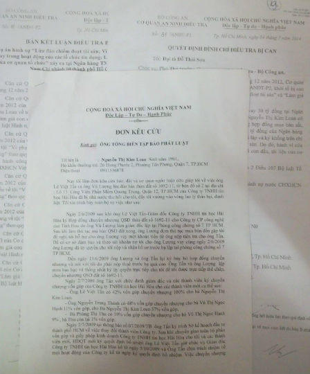 (PLO) - Cho rằng bị khởi tố về tội “Lừa đảo chiếm đoạt tài sản” trong vụ án xảy ra tại Ngân hàng Thương mại Cổ phần Công thương Việt Nam, Chi nhánh 10 TP Hồ Chí Minh là không khách quan, có dấu hiệu bất thường, bà Nguyễn Thị Kim Loan (trú tại 26 Hưng Phước 2, phường Tân Phong, quận 7, TP HCM) đã có đơn khiếu nại.