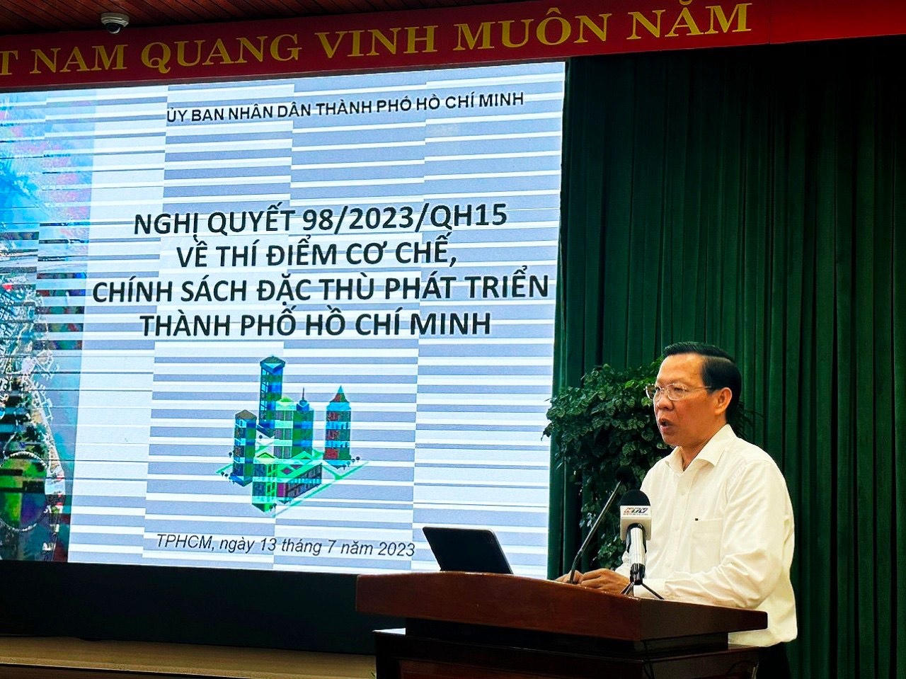 (PLVN) - Chiều 13/7, Chủ tịch UBND TP Hồ Chí Minh Phan Văn Mãi chủ trì Hội nghị thông tin, triển khai thực hiện Nghị quyết số 98/2023/QH15 ngày 24/6/2023 của Quốc hội về thí điểm một số cơ chế, chính sách đặc thù phát triển TP.