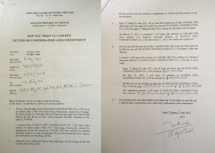 Kinh phí 2,2 triệu USD mà ông Kang Man Won chuyển trực tiếp cho Cty DAVOCO và Cty CDCo để các công ty thực hiện các phần việc của mình. Nhưng không hiểu tại sao số tiền này lại nằm trong tay của ông Tuấn? Bên cạnh đó, năm 2008, khi ký hợp đồng hợp tác với 4 bên, trong hợp đồng ông Tuấn đứng vai trò là Giám đốc dự án của Cty Đại Tín, còn ông Ngô Đức Tuyên mới là Giám đốc Cty DAVOCO, nhưng năm 2011 khi làm biên bản xác nhận đã nhận 2,2 triệu USD của ông Kang Man Won thì ông Tuấn lại đứng ở vai trò Giám đốc Cty DAVACO? Vậy ông Tuấn đóng vai trò như thế nào trong hợp đồng hợp tác 4 bên này?