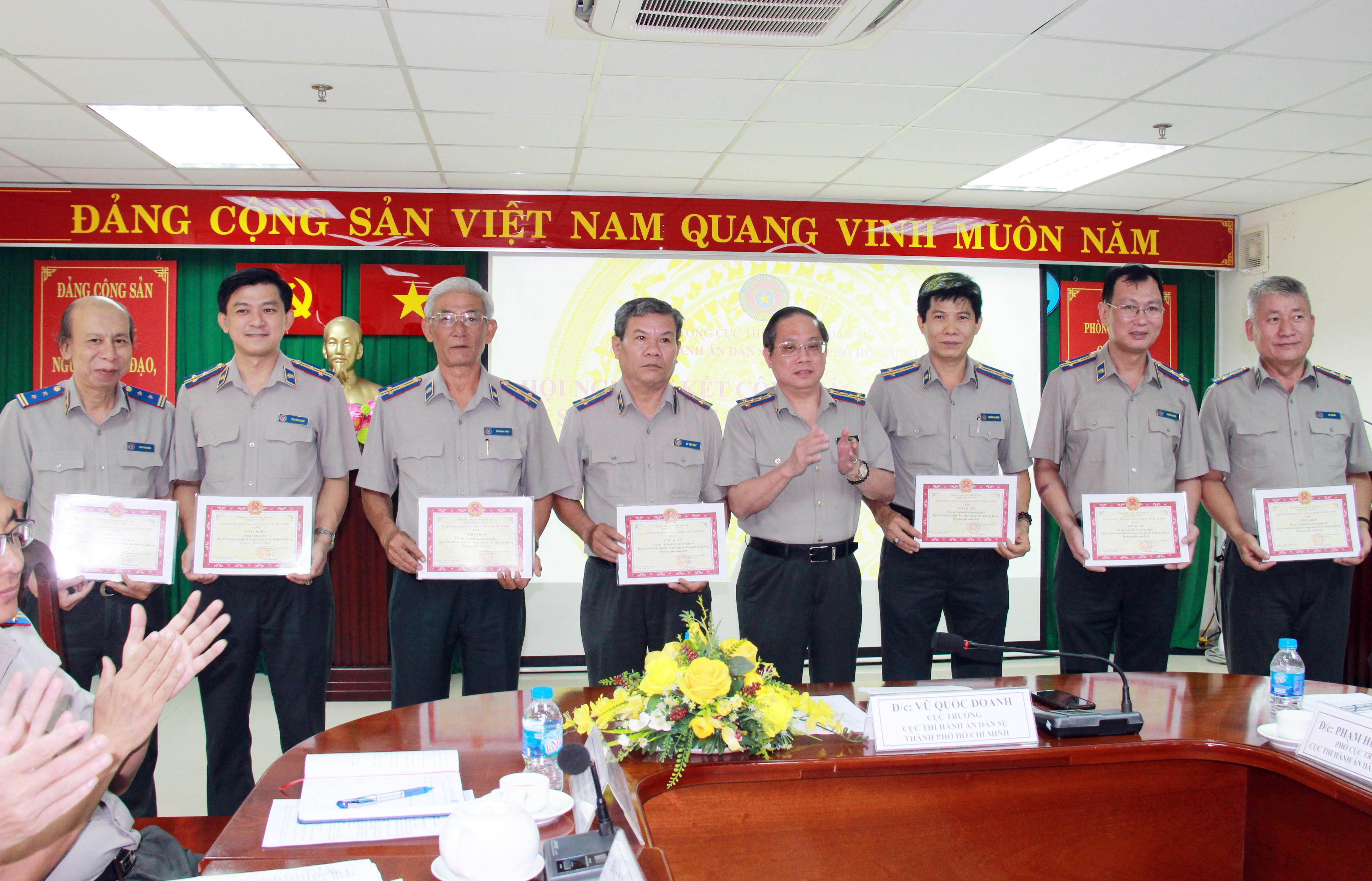 Cũng tại Hội nghị cũng đã trao tặng Giấy khen của Cục trưởng Cục THADS thành phố cho 15 tập thể và 98 cá nhân thuộc các phòng chuyên môn, Chi cục THADS quận/huyện đã có thành tích xuất săc trong công tác Thi hành án dân sự 06 tháng đầu năm 2020./.