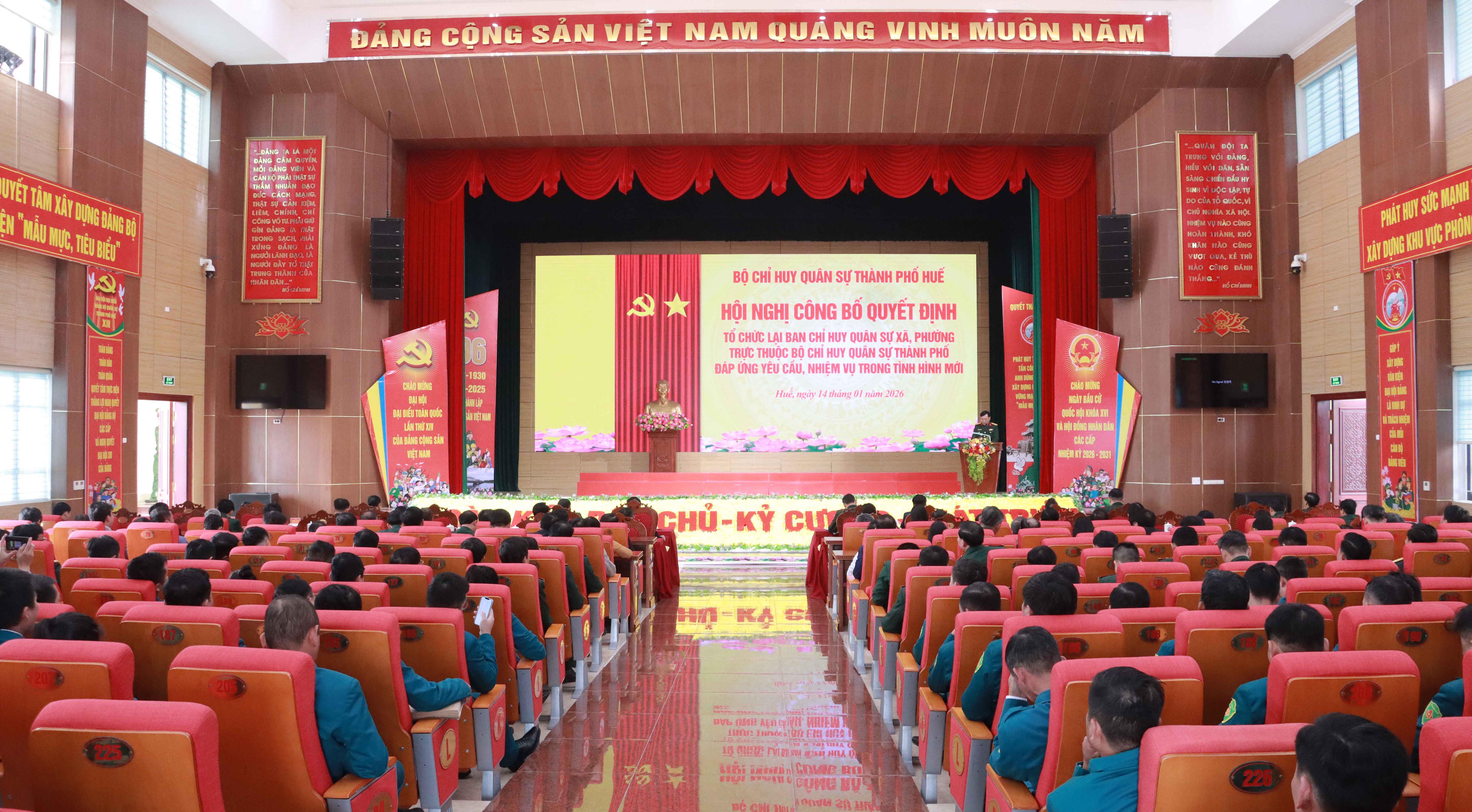 Ngày 14/01, Bộ Chỉ huy Quân sự (CHQS) thành phố tổ chức Hội nghị công bố quyết định tổ chức lại Ban CHQS xã, phường và trao quyết định điều động, bổ nhiệm 40 đồng chí Chỉ huy trưởng Ban CHQS các xã, phường.