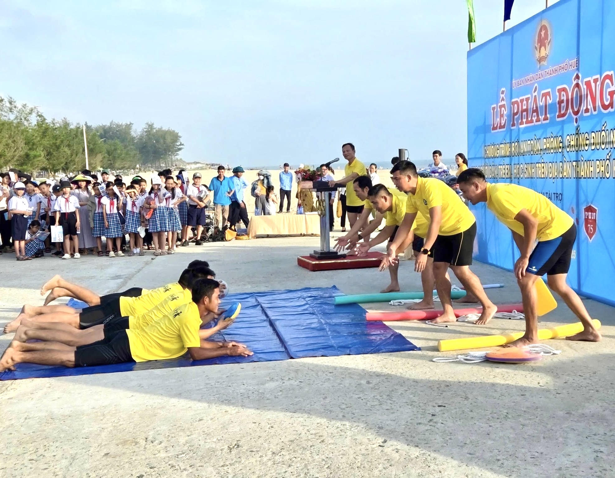 (PLVN) - Sáng 24/5, tại bãi biển Thuận An, UBND thành phố Huế tổ chức lễ phát động chương trình bơi an toàn, phòng chống đuối nước cho người dân, trẻ em và học sinh trên địa bàn. Đây là hoạt động thiết thực, góp phần nâng cao nhận thức về kỹ năng bơi lội và cứu hộ đuối nước cho các cấp, ngành, gia đình, cộng đồng dân cư và du khách.