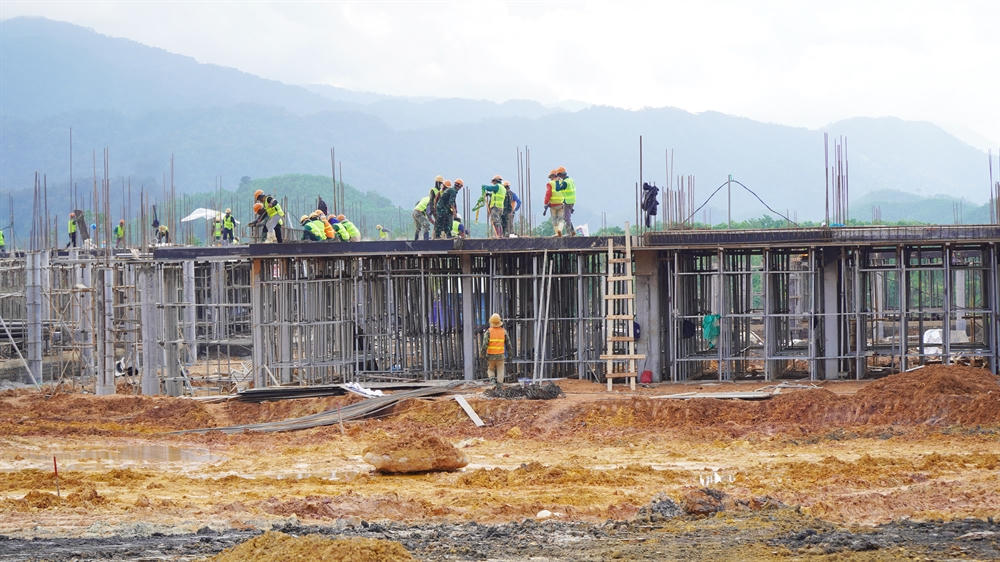 Đến nay, đối với các khối nhà như: Hành chính quản trị, đa chức năng, thư viện, công vụ, bếp ăn… đều hoàn thành gia công lắp dựng cốt thép, xây dựng sàn các tầng, bê tông cột, san nền hạ tầng sân đường và xây dựng hệ thống PCCC… với lũy kế khối lượng đã thực hiện đạt 16% tiến độ theo hợp đồng.