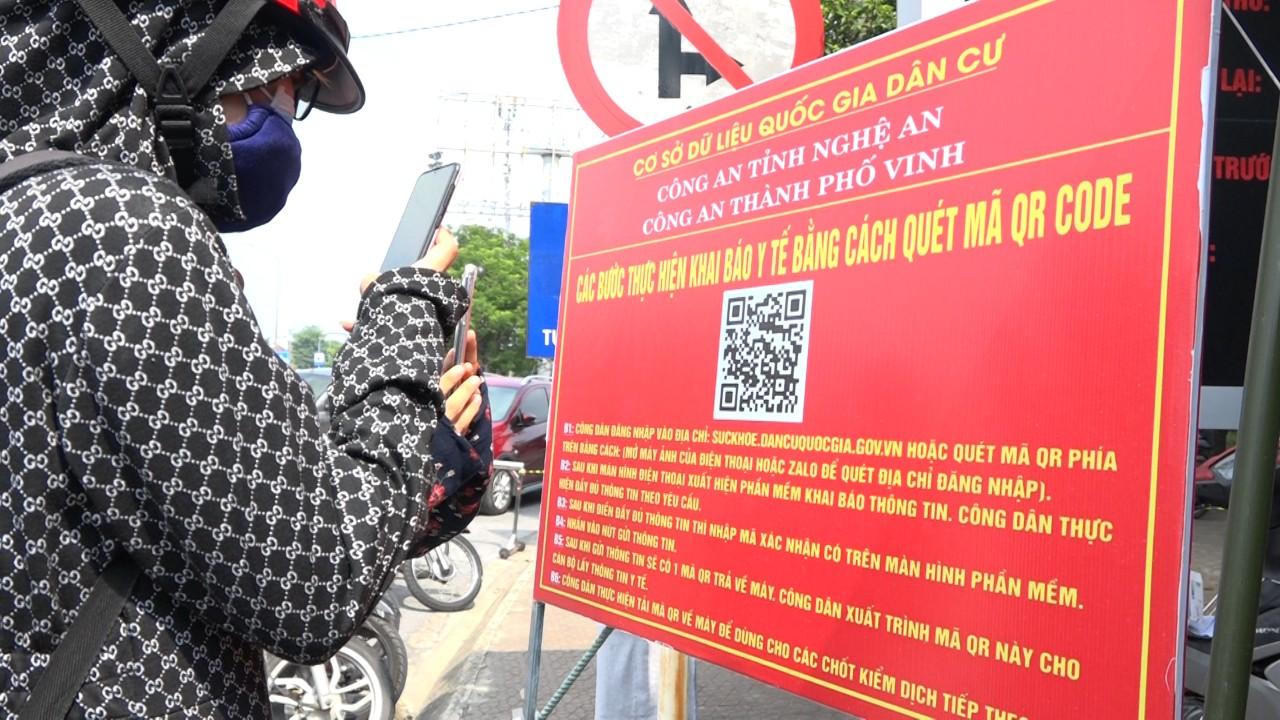 Người dân khai báo y tế bằng cách quét mã QR- Code. |