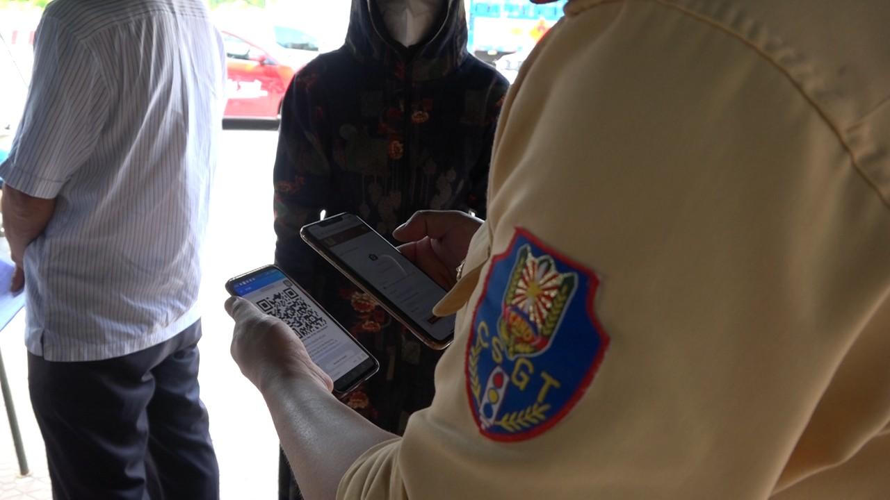 Cơ quan chức năng hướng dẫn quét mã khai báo y tế cho người dân. |