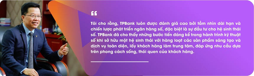 Ông Nguyễn Hưng, Tổng Giám đốc TPBank chia sẻ: “Tôi cho rằng, TPBank luôn được đánh giá cao bởi tầm nhìn dài hạn và chiến lược phát triển ngân hàng số, đặc biệt là sự đầu tư cho hệ sinh thái số. TPBank đã cho thấy những bước tiến đáng kể trong hành trình kỹ thuật số khi sở hữu một hệ sinh thái với hàng loạt các sản phẩm sáng tạo và dịch vụ toàn diện, lấy khách hàng làm trung tâm, đáp ứng nhu cầu dựa trên phong cách sống, thói quen của khách hàng”.