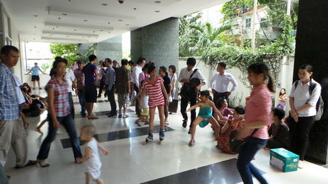 Hàng trăm người dân, nhân viên văn phòng trong đó có cả người nước ngoài phải tháo chạy khỏi một chung cư khi tiếng còi báo cháy vang lên…