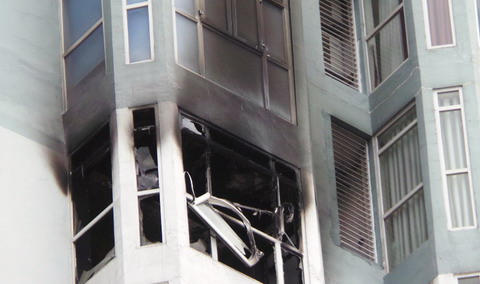 Tiếp sau đó, toàn bộ hệ thống điện bị ngắt và mọi người phải lập tức rời khỏi nơi cư trú bằng thang bộ xuống đất. Trong khi đó, từ trên tầng 22, khói đã bốc lên cuồn cuộn.