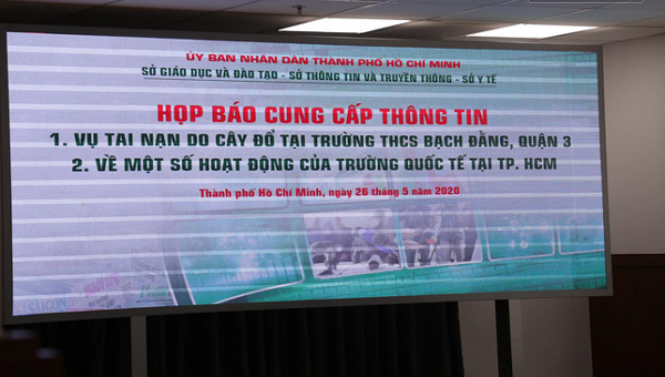 (PLVN) - Chiều ngày 26/5, Sở Thông tin và Truyền thông TP HCM cùng Sở GD-ĐT, Sở Y tế, UBND quận 3 đã tổ chức họp báo, cung cấp thông tin vụ tai nạn do cây phượng ngã bật gốc tại Trường THCS Bạch Đằng trên địa bàn quận 3, khiến một học sinh tử vong.