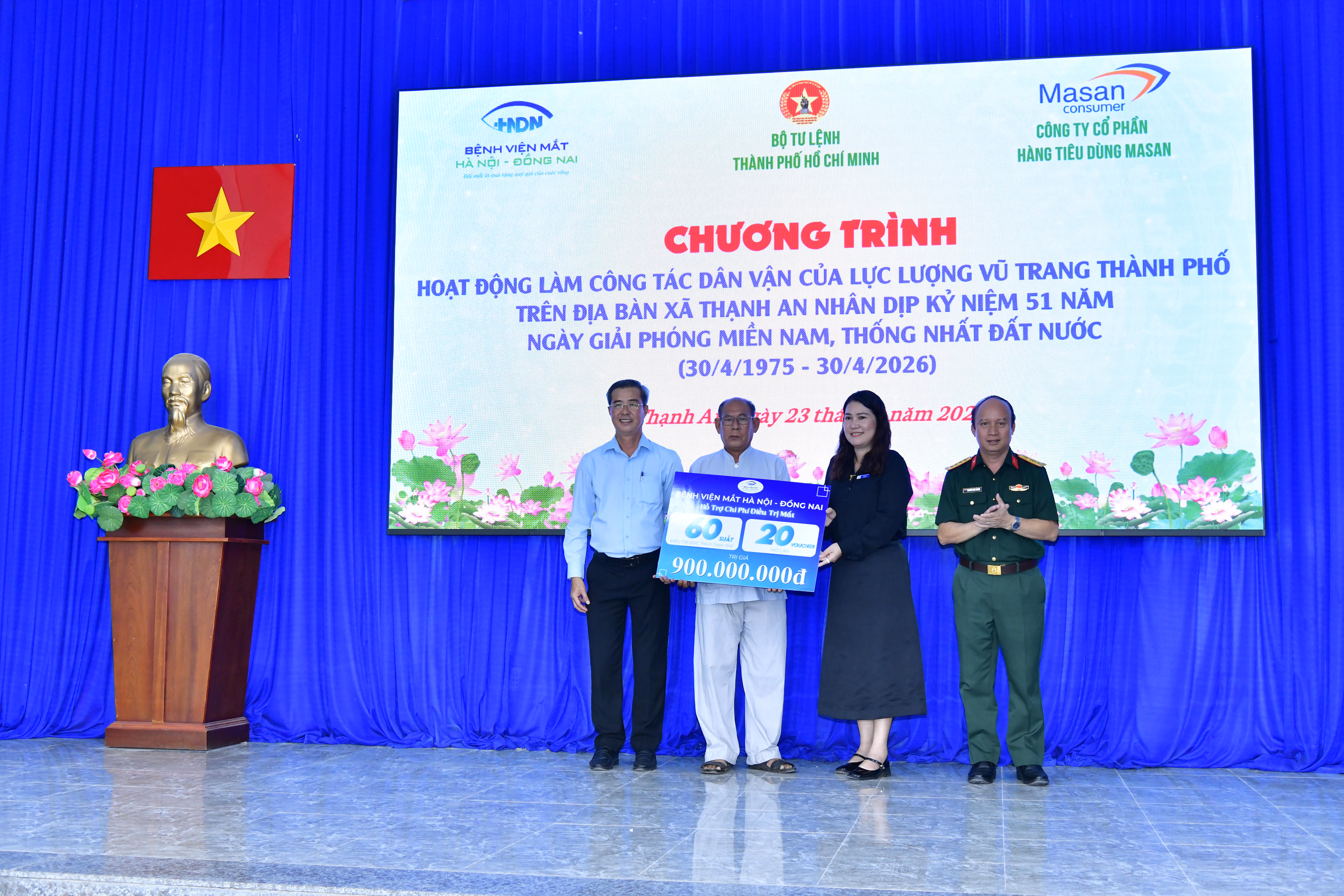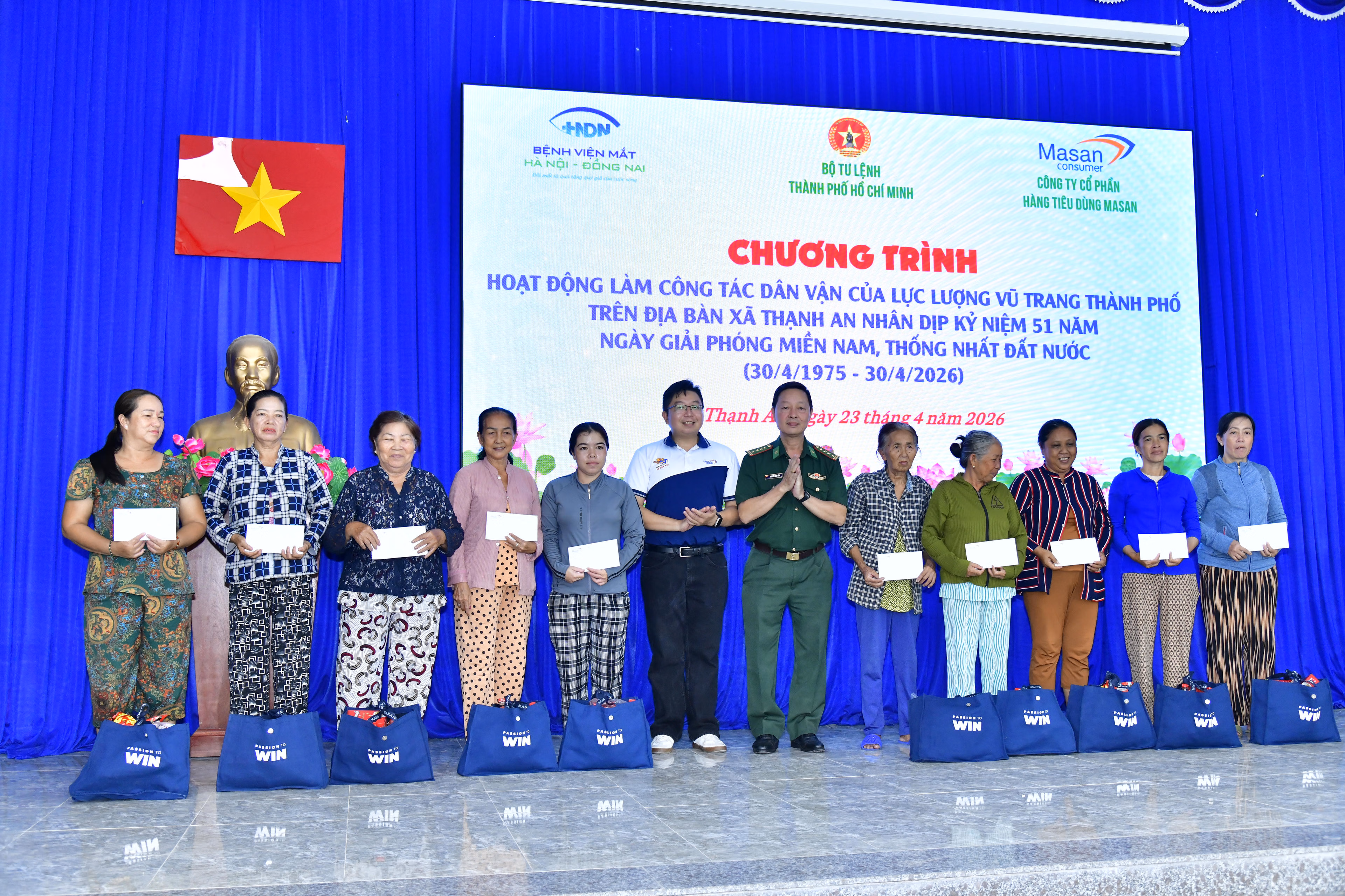 Trong chương trình, nhiều hoạt động thiết thực, giàu tính nhân văn đã được triển khai như tặng 50 phần quà cho các gia đình chính sách, người có công với cách mạng; trao tặng 60 suất điều trị đục thủy tinh thể, 20 suất mổ cận trị giá 900 triệu. Bên cạnh đó, 20 suất học bổng được trao trong Chương trình “Đồng hành cùng học sinh xã Thạnh An” và học sinh nghèo hiếu học trong mô hình “Nâng bước em đến trường - Con nuôi Đồn Biên phòng”. Đặc biệt, chương trình còn trao tặng xe điện nhằm phục vụ nhu cầu đi lại và góp phần phát triển kinh tế địa phương theo hướng thân thiện môi trường.