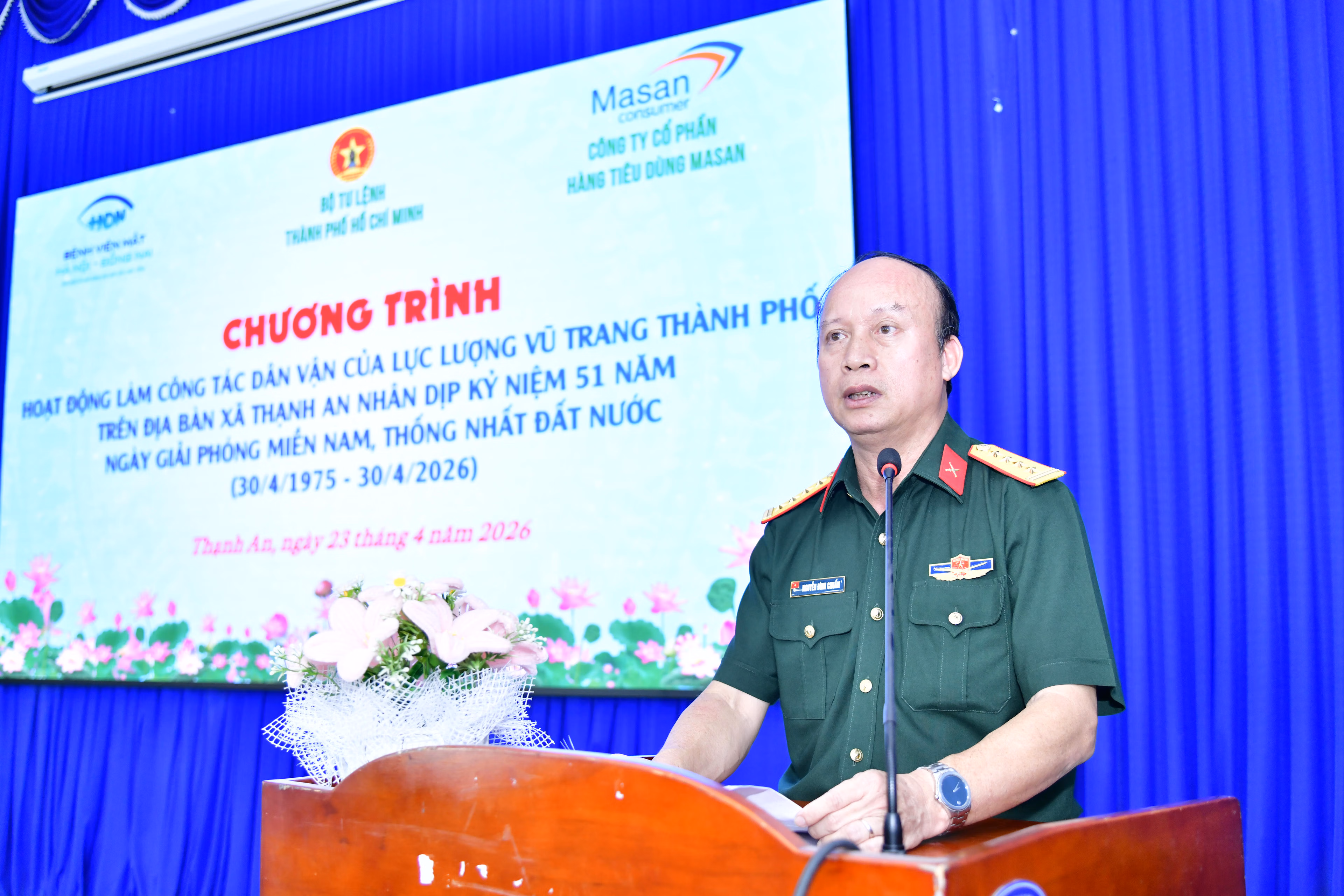 PLVN- Sáng 23/4, nhân dịp Kỷ niệm 51 năm Ngày giải phóng miền Nam, thống nhất đất nước (30/4/1975-30/4/2026) Bộ Tư lệnh TP.HCM tổ chức hoạt động công tác dân vận trên địa bàn xã Thạnh An nhằm thực hiện tốt chính sách đền ơn đáp nghĩa, chăm lo an sinh xã hội, tuyên truyền pháp luật, góp phần phát triển kinh tế - xã hội, xây dựng thế trận lòng dân gắn với nhiệm vụ bảo vệ chủ quyền biển, đảo.