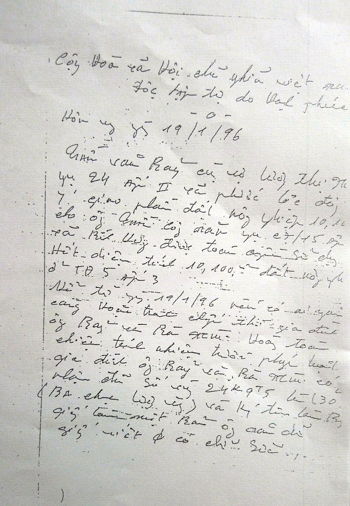 Giấy viết tay xác nhận rõ:“Hôm nay ngày 19/01/1996, Trần Văn Bảy cùng vợ Lương Thị Mùi (ngụ 24, ấp II, xã Phước Lộc) đồng ý giao phần đất nông nghiệp 10.100m2 cho ông Trần Công Năn (ngụ C7/15 ấp 3 xã Bình Hưng) được toàn quyền sử dụng hết diện tích 10.100m2 ở Tập đoàn số 5 ấp 3. Kể từ ngày 19/1/96 nếu có ai ngăn cản hoặc tranh chấp thì gia đình ông Bảy và bà Mùi hoàn toàn chịu trách nhiệm trước pháp luật Gia đình ông Bảy và bà Mùi có nhận đủ số vàng là 24K 9T5 là 30c (ba chục lượng vàng) và ký tên làm bằng…” (có chữ ký ông Bảy và bà Mùi).