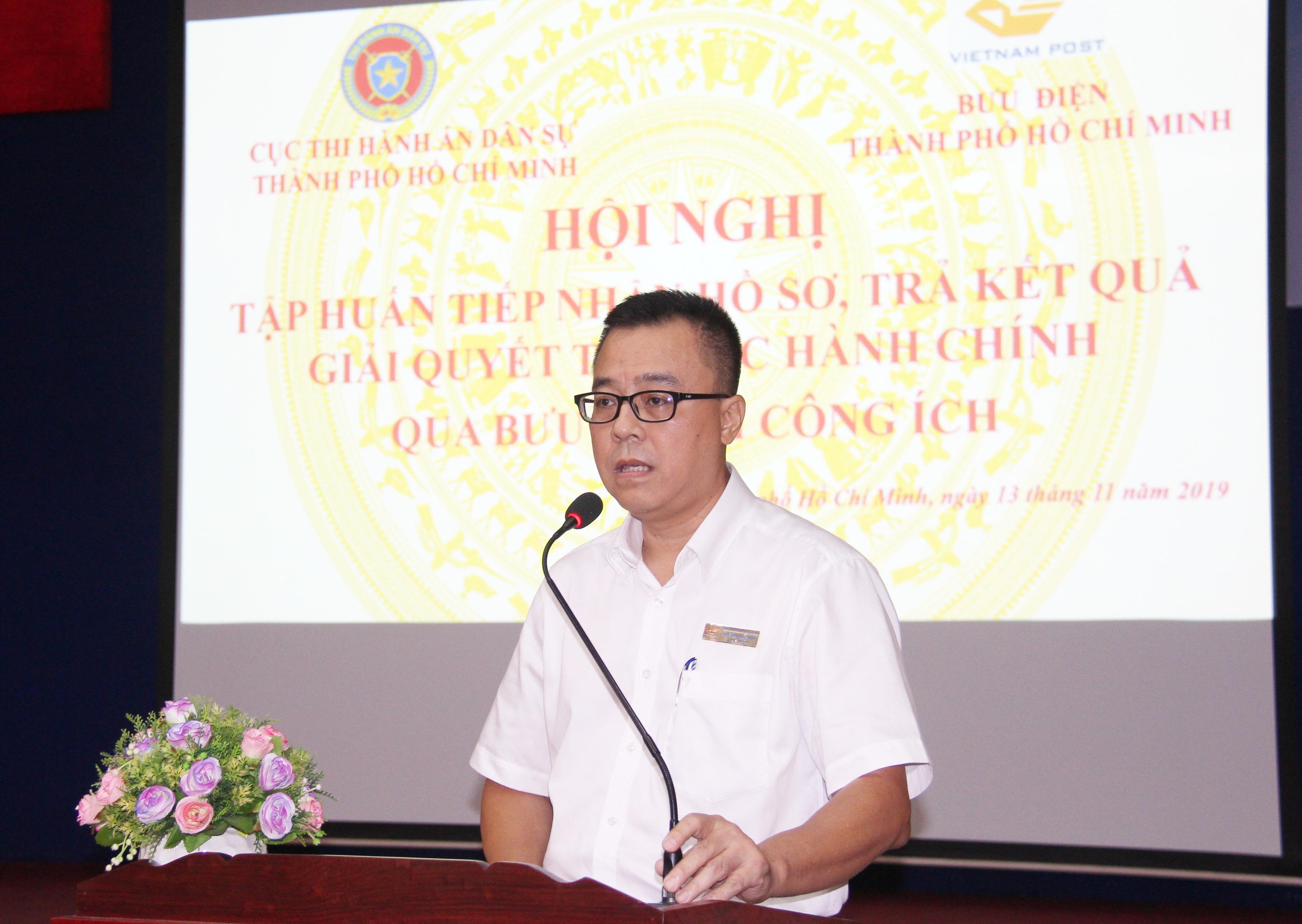 Phát biểu tại buổi tập huấn, Phó Cục trưởng Cục THADS thành phố Nguyễn Văn Hòa cảm ơn sự phối hợp giữa hai đơn vị Cục THADS và Bưu điện thành phố, việc triển khai theo thỏa thuận hợp tác đã được ký kết từ tháng 9 năm 2018 và đi vào hoạt động, bước đầu đã có khả quan nhưng để giúp đội ngũ trực tiếp tiếp nhận hồ sơ, trả kết quả giải quyết thủ tục hành chính (TTHC) qua bưu chính công ích, tuyên truyền sâu rộng tới bên cần hỗ trợ qua bưu chính. Cục THADS thành phố đã tập huấn chuyên sâu, tọa đàm để cán bộ trực tiếp làm công việc này có thể hiểu cặn kẽ, hướng dẫn người dân có yêu cầu THA được chính xác đạt hiệu quả.