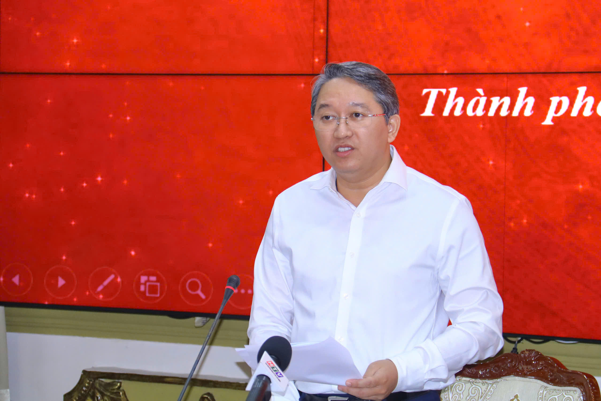 Phó Chủ tịch Thường trực UBND TP.HCM Dương Ngọc Hải báo cáo tại buổi làm việc. |