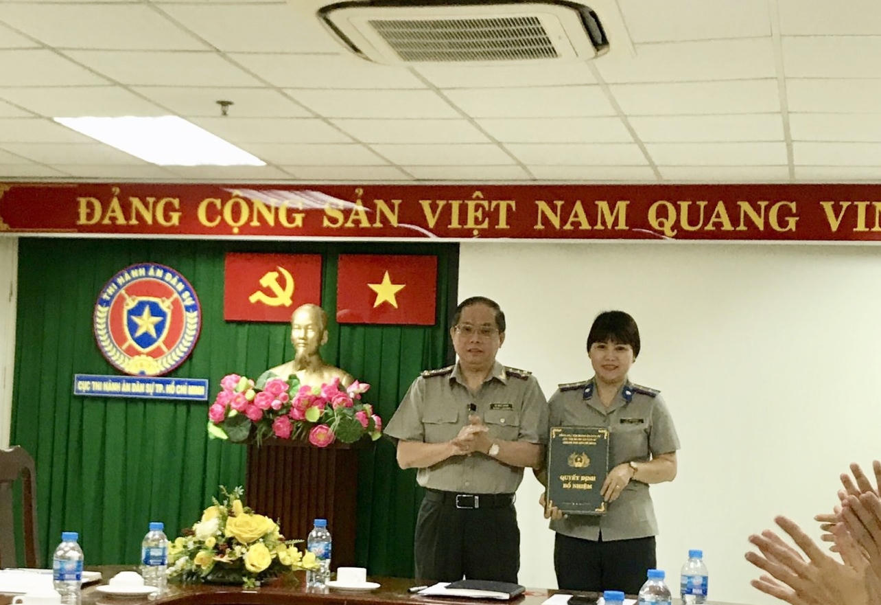 Trước đó, sáng ngày 05.8, tại hội nghị giao ban công tác THADS tháng 8.2019, Cục trưởng Cục Thi hành án dân sự thành phố đã trao Quyết định bổ nhiệm chức vụ Phó Phòng Nghiệp vụ và tổ chức thi hành bản án, quyết định dân sự, kinh tế, lao động, hôn nhân gia đình, phá sản, trọng tài thương mại (gọi tắt là phòng Nghiệp vụ 1) thuộc Cục THADS thành phố cho đồng chí Lê Thị Hường, chấp hành viên sơ cấp phòng Nghiệp vụ 1 - Cục THADS thành phố Hồ Chí Minh.Việc kiện toàn kịp thời đội ngũ lãnh đạo cấp phòng với hy vọng các đồng chí được bổ nhiệm trên cương vị mới sẽ cùng gánh vác nhiệm vụ, phát huy năng lực quản lý, lãnh đạo của mình cùng tập thể lãnh đạo Phòng Nghiệp vụ 1 nêu gương, lãnh đạo đơn vị thực hiện chỉ tiêu, nhiệm vụ công tác năm 2019 và những năm tiếp theo đạt hiệu quả, góp phần vào sự phát triển chung của Hệ thống thi hành án dân sự thành phố Hồ Chí Minh./.