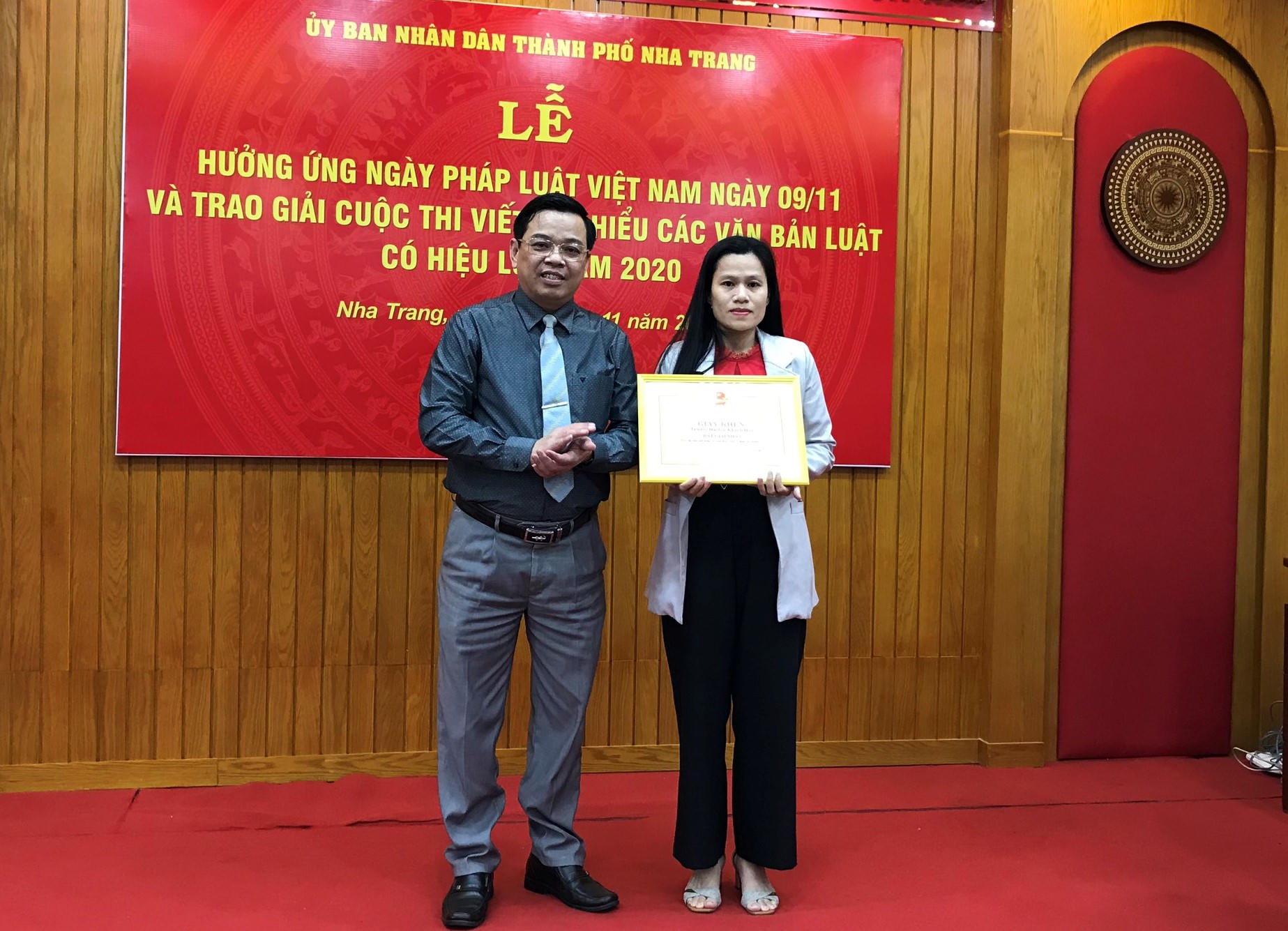 (PLVN) -Chiều 09/11, UBND TP.Nha Trang long trọng tổ chức Lễ hưởng ứng Ngày Pháp luật Việt Nam (09/11) và tổng kết trao giải cuộc thi tìm hiểu các văn bản Luật có hiệu lực năm 2020. Đến dự có ông Bảo Thọ – Phó Chủ tịch HĐND thành phố, ông Nguyễn Sỹ Khánh – Phó Chủ tịch thường trực UBND thành phố.