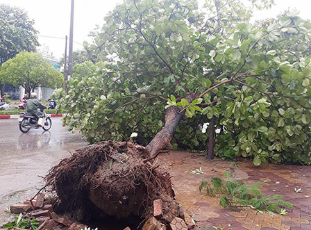 Hầu hết các tuyến đường trên thành phố Vinh đều có cây cối bị bật gốc đè lên mái nhà dân, ngã ra đường phố, hoặc các công trình công cộng.